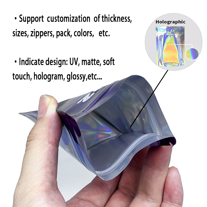Ons bied verskeie materiaalopsies, insluitend Mylar-sakkies, folie-sakke en regopstaande sakkies met kindweerstande eienskappe. Aangepaste drukopsies maak ruimte vir handelsmerkboodskappe en regulerende inligting, terwyl veranderlike grootte-opsies alles akkommodeer vanaf klein monsters tot grootmaatopbergingshouers.