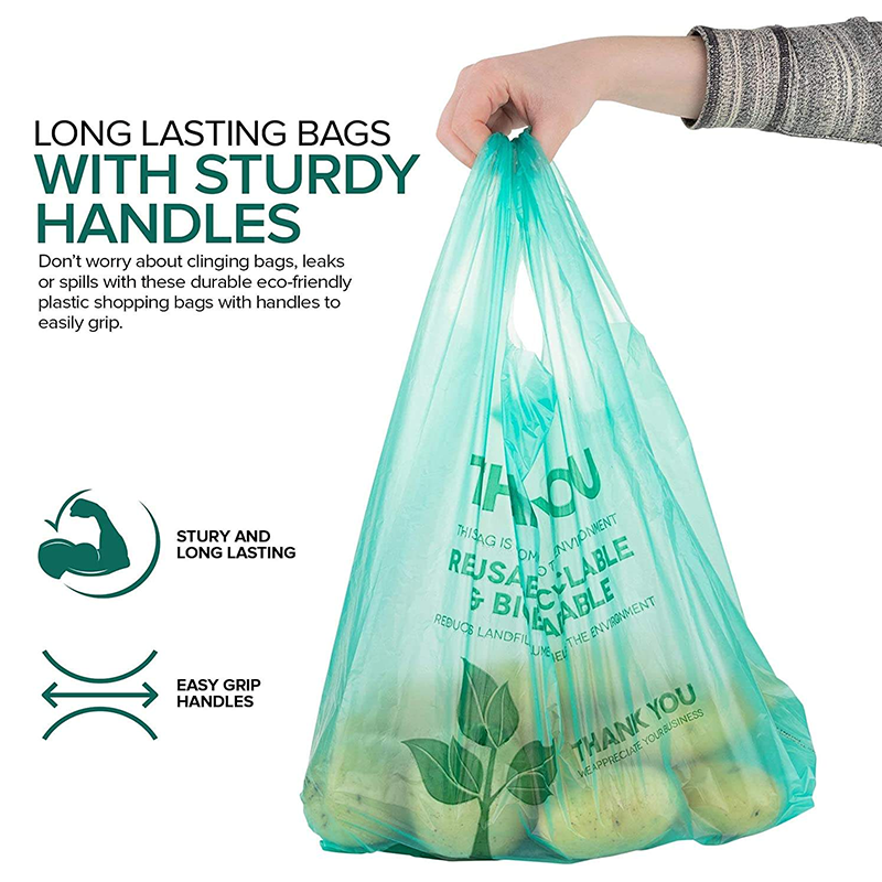 ・Resistência e Usabilidade: Projetadas com alças tipo colete, fundos selados em estrela e reforços laterais, essas sacolas oferecem excelente resistência ao rasgo, proteção contra vazamentos e capacidade de carga — tornando-as adequadas para tudo, desde compras de supermercado até a coleta de resíduos orgânicos úmidos.