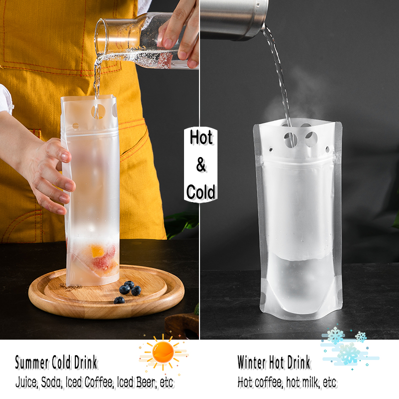 Diferentemente das garrafas rígidas, as bolsas para bebidas com fundo reforçado e canudos dobram ou enrolam quando vazias, minimizando o armazenamento tanto na área de frente quanto nos bastidores. Isso é uma vantagem para bares móveis, locais ao ar livre, piqueniques, acampamentos e dias na praia.