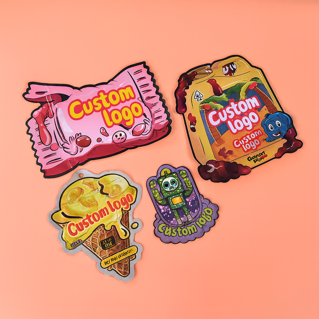 As bolsas em formato permitem uma marcação criativa — imitando o formato do produto ou incorporando designs temáticos — reforçando a identidade da marca e sua narrativa