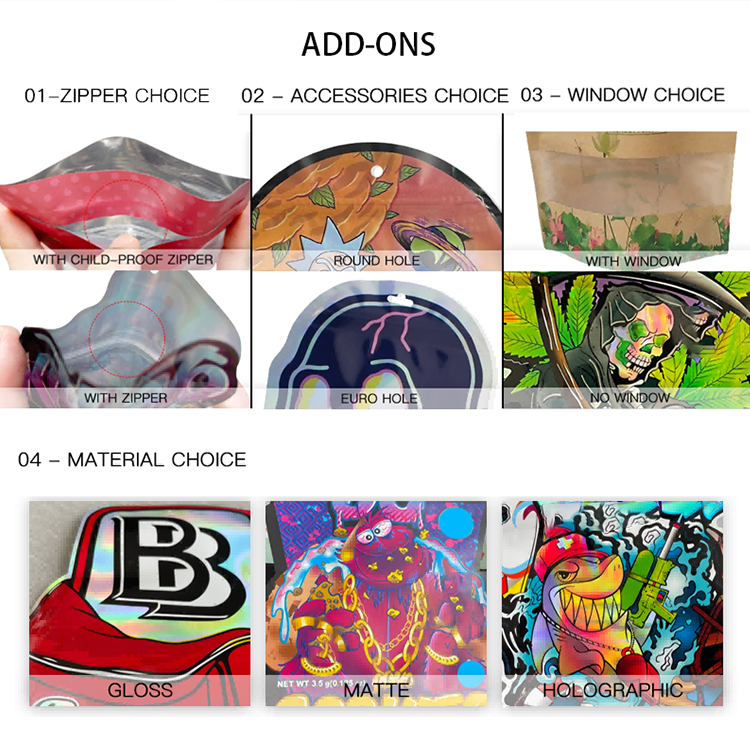 Nome | Folha de Impressão Digital com Corte 3,5g 7g 14g 28g, Bolsa em Formato Mylar com Proteção Infantil, Impressão Interna, Holograma, Bloqueio de Odor e Formato Especial |