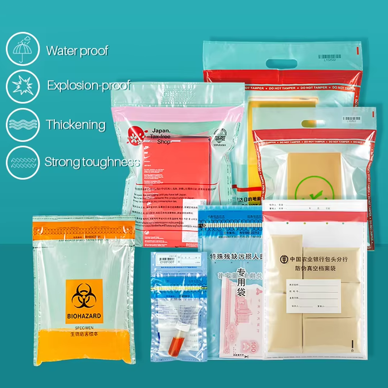 Banco: Utiliza camadas laminadas resistentes ao rasgo para proteger o dinheiro durante o transporte.