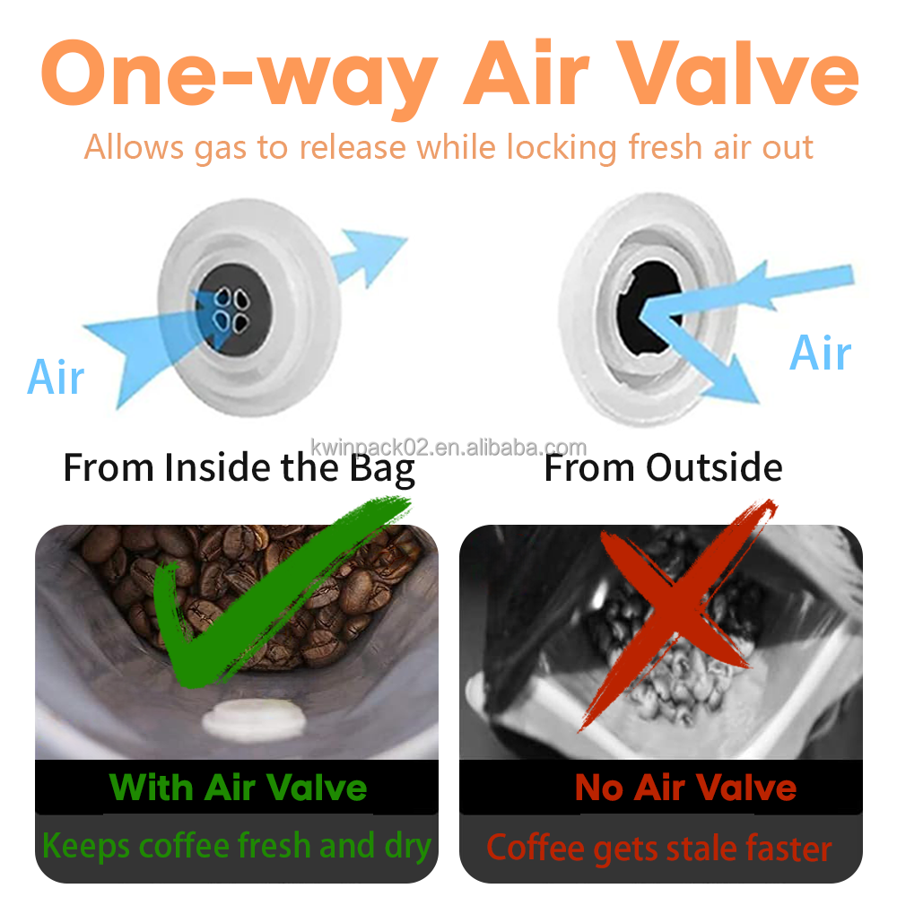 Malá, no veľmi dôležitá súčiastka nachádzajúca sa na profesionálnej kávovej obálke je jednosmerný odplynovací ventil. Tento vynikajúci vynález umožňuje uvoľnenie oxidu uhličitého (CO₂), ktorý sa prirodzene uvoľňuje z kávových zŕn, aby unikol z vrecka, a zároveň úplne zabráni vstupu vonkajšieho vzduchu. Bez tohto ventilu by sa v dôsledku vnútorného tlaku mohlo vrecko nadúvať alebo dokonca prasknúť. S týmto ventilom môže káva bezpečne „dýchať“ a dokončiť proces odplynenia bez rizika oxidácie. To zabezpečuje celistvosť obalov a pomáha udržať kávu v čo najčerstvejšom stave, až kým sa dostane k spotrebiteľovi.